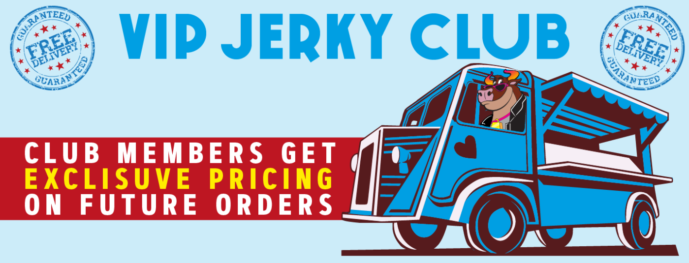 Get VIP Pricing on more jerky! Place an order and have it added to your regular monthly club jerky and save on free shipping since monthly club deliveries are shipped for free!
